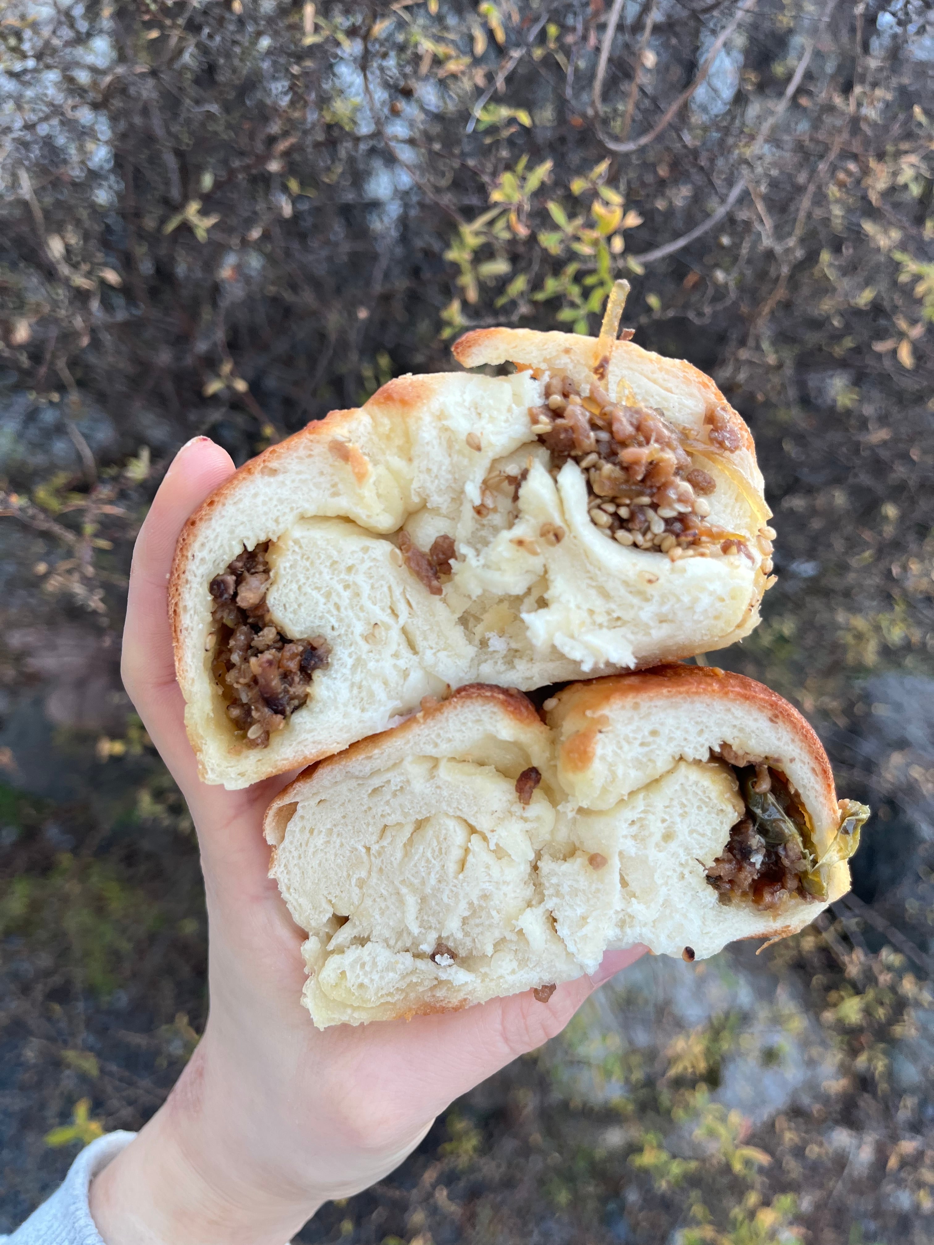 ひき肉、玉ねぎ、人参をじっくり煮込んだトマトソース系ベーグルです。ピリッと黒胡椒とバジルの風味の感じる具だくさんトマトソースと自家製モッツァレラのまろやかさがぴったりです!