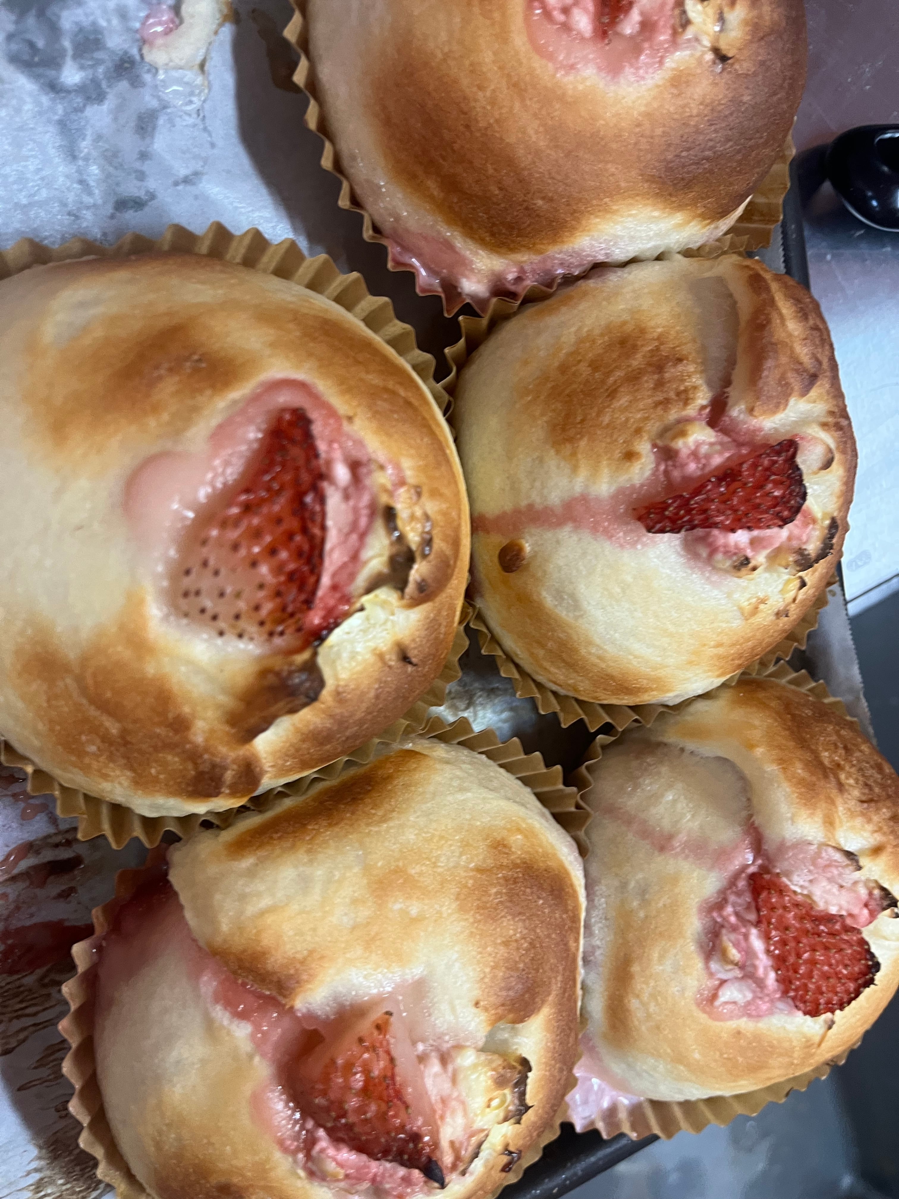 生の苺なので焼き上がりのジュワッと感がたまりません…!それが少し甘めのクリームチーズとの相性抜群なんです…この季節だけの限定なのでぜひお試しください!冷やしベーグルにしても美味しいです!
